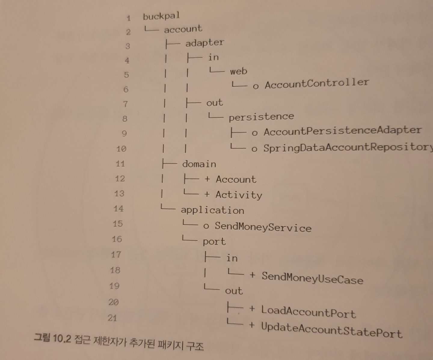 domain 패키지는 다른 계층에서 접근할 수 있어야하고, application 속성은 web 어댑터와 persistence 어댑터에서 접근 가능해야 한다.
