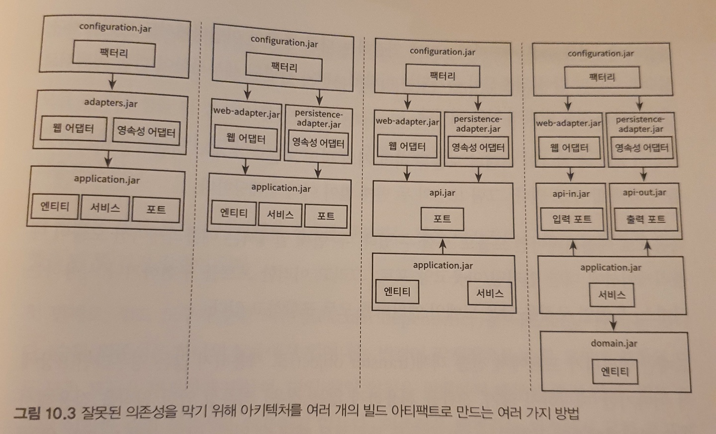 각 계층에 대해 전용 코드베이스, 빌드 아티팩트로 분리된 모듈을 만들 수 있다.